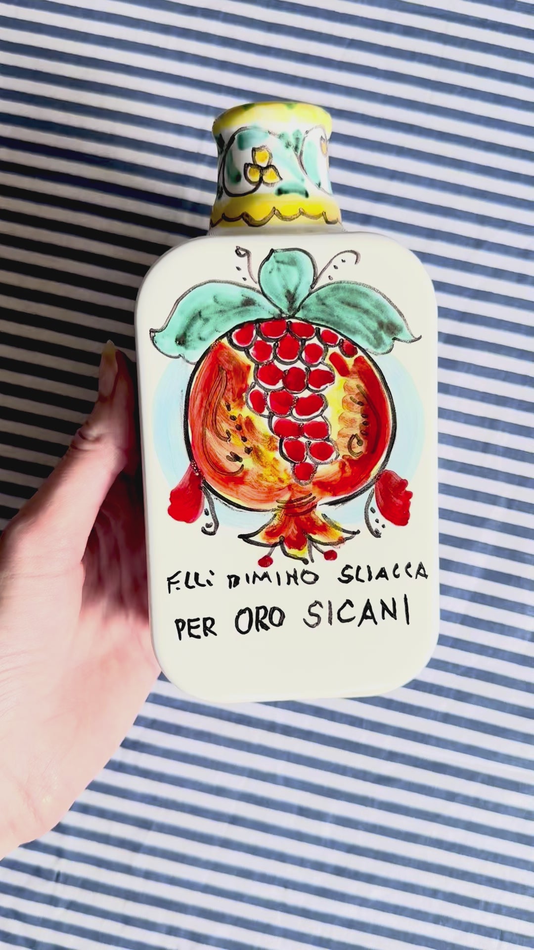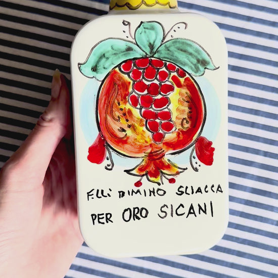 Hand-Painted Sicilian Olive Oil Bottle ~ Melograno Azzurro