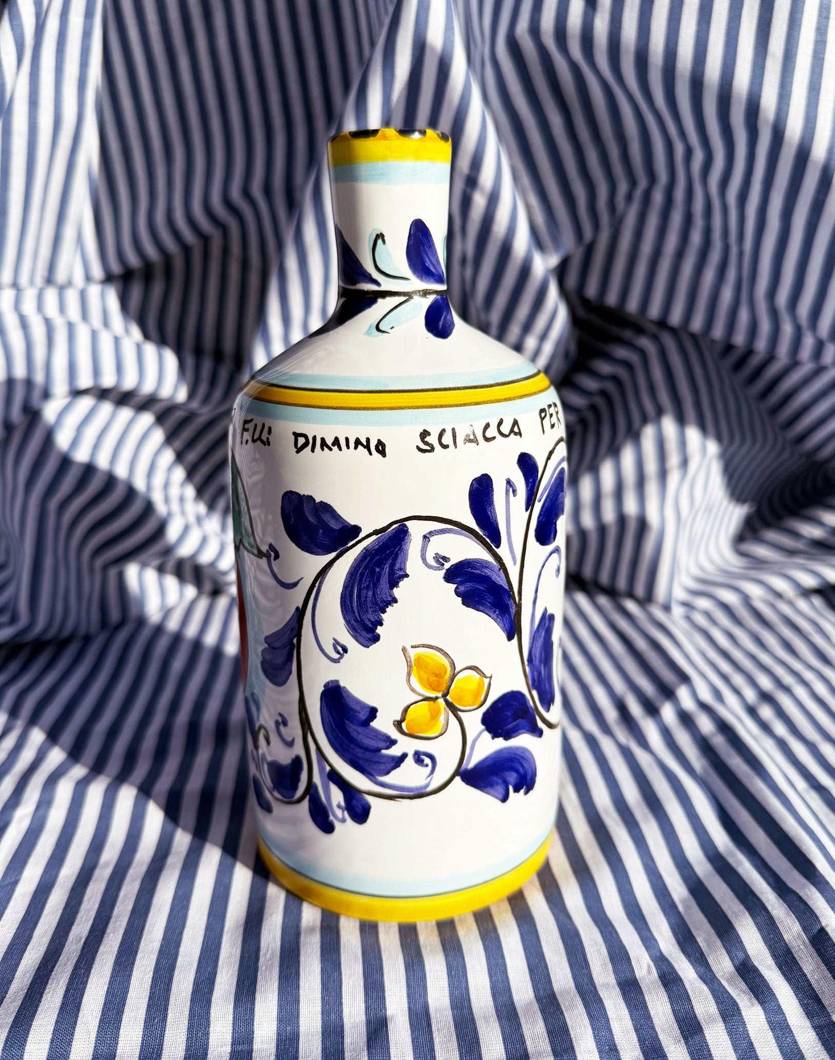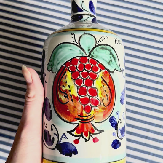 Hand-Painted Sicilian Olive Oil Bottle ~ Melograno Blu