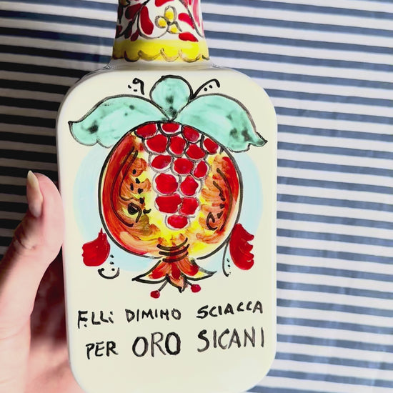 Hand-Painted Sicilian Olive Oil Bottle ~ Melograno Cremisi