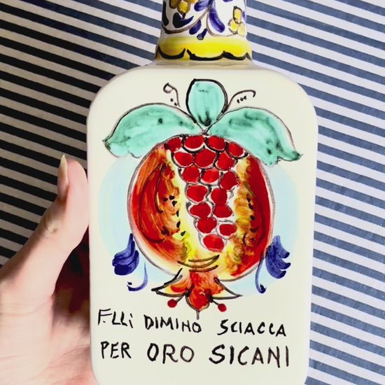 Hand-Painted Sicilian Olive Oil Bottle ~ Melograno Klein Blue