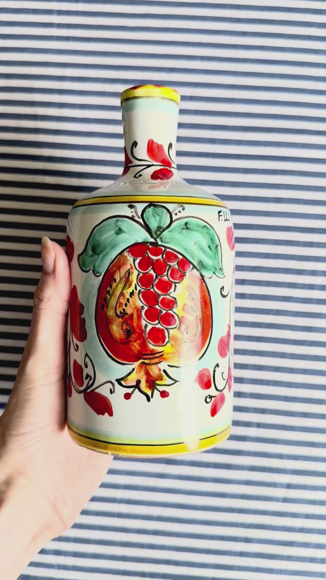 Hand-Painted Sicilian Olive Oil Bottle ~ Melograno Rosso