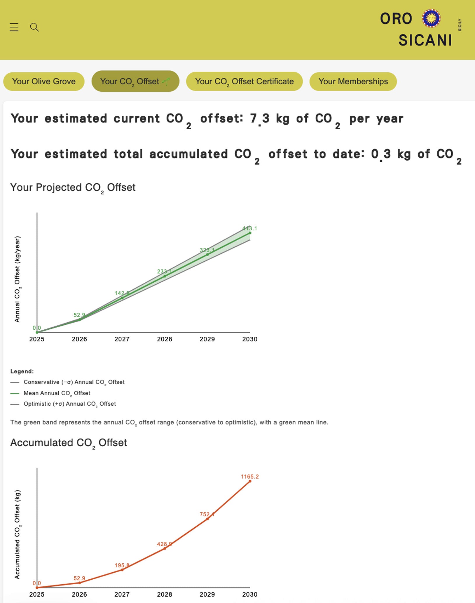 Your contribution covers 12 months of us caring for your EU-certified olive tree sapling, adhering to regenerative farming principles and practices , in ORO SICANI Estate, which is nestled in the secluded Sicani Mountains of Sicily, Italy. We're on a mission to be Carbon Negative and give people a fun and fast way to offset their carbon footprint while leaving a positive mark on the environment.